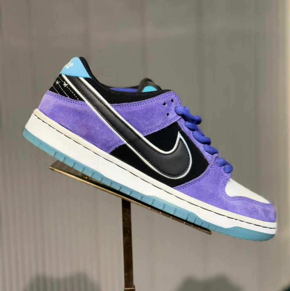 The Nike SB Dunk Low Pro “Court Purple” blends iconic skate heritage with bold street style. Crafted with premium Court Purple suede overlays, this sneaker delivers a standout look while maintaining durability for daily wear or skate sessions. The black leather Swoosh with white contrast stitching adds a classic Nike touch, while the white cushioned midsole ensures comfort and impact protection.